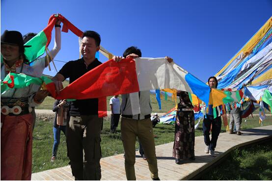 克丽缇娜集团大中华区品牌营运长赵承佑先生以及主创人员一共悬挂经幡 《冈拉梅朵》第一主人公:索南吉 探访藏族牧民家庭寻找西藏少女勇敢追梦背后的故事 河南蒙古族自治县多松乡,平均海拔3000多米,蓝天、白云、高山、草场、牛群……构成了高山草甸的壮美景观。女主人公索南吉一家就生活在这如诗如画的景色里。在《冈拉梅朵》开机之际,克丽缇娜集团大中华区品牌营运长赵承佑做客了这位藏族姑娘的牧场家园。 多松乡牧场上,散落着一些白色的帐篷,那是牧民夏季来放牧时居住的家。营运长一行走进索南吉家栅栏内时,一家人就笑脸迎了出来。索南吉是个18岁的藏族姑娘,说得一口流利的普通话。由于强烈的紫外线照射,她的脸红红的,有点腼腆,没开口先笑。今年夏天,她们一家人像往年一样来到夏季牧场这个家。在这里,陪伴她们的是看家护院的藏獒、成群的牛羊和2匹马。 坐在帐篷前的草坪上,营运长询问了索南吉家中牧场的情况。每天清晨,索南吉就起床了。给牦牛挤完奶之后,二姐上山放牧,她在家用奶油分离机分离出酥油和奶渣。帐篷虽然没有通电,但太阳能灯可以简单照明。照料家人饮食、挤奶、拾牛粪、磨青稞、看护家中的小辈等,就是索南吉的暑假生活,很少出门,活动范围十分有限,接触外界的机会也变少。即便如此,索南吉盼望着九月开学,继续美容美发专业的学习,走出家庭,投身到社会中去追求自己的理想,摆脱传统偏见的束缚,这在传统与现代的夹缝中迎接新的挑战,寻求新的发展空间。