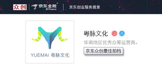 2016年,京东众筹成为国内最大的众筹平台。京东体系内部进一步加大对众创生态的支持力度。同年,7月15日京东官方在全网开展“谁是京东众筹最佳拍档”评选活动,历经14天广泛传播,项目方、创业者、众筹爱好者、企业家代表合计超30万人次参与投票,最终诞生“京东众筹最佳拍档”。广州粤脉文化发展有限公司逐鹿群雄,以优异的成绩获得“最佳拍档”光荣称号。京东服务帮全国通报表扬并给予粤脉文化1000分积分奖励。