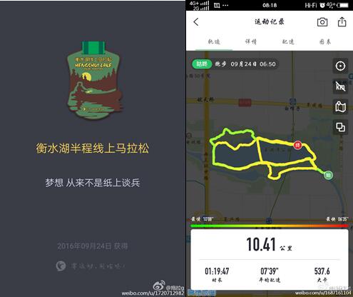 衡水湖国际马拉松同时也是全国马拉松锦标赛的第4站,对跑马爱好者来说,是不折不扣的比赛日,全国最大的运动社交平台咕咚以“跑者乐水”为主题,推出了衡水湖线上马拉松,号召全国跑者在比赛当天提升PB,跑出属于自己的线上比赛成绩,近24万热跑族纷纷参与其中。 出于衡水湖的独特地缘因素,以及国内唯一的环湖马拉松赛事优势,咕咚从“仁者乐山,智者乐水”得到创意,赋予了该分站线上赛最大气的主题——“跑者乐水”。金秋时节北方湖泊特有的荷香鱼肥、绿水白苇,带给跑马爱好者无上的现场享受。线上马拉松的奖牌,也用翡翠蓝、月亮黄、烟墨黑三种颜色,打造了月下泛舟的游湖乐趣,充满清新和浪漫。