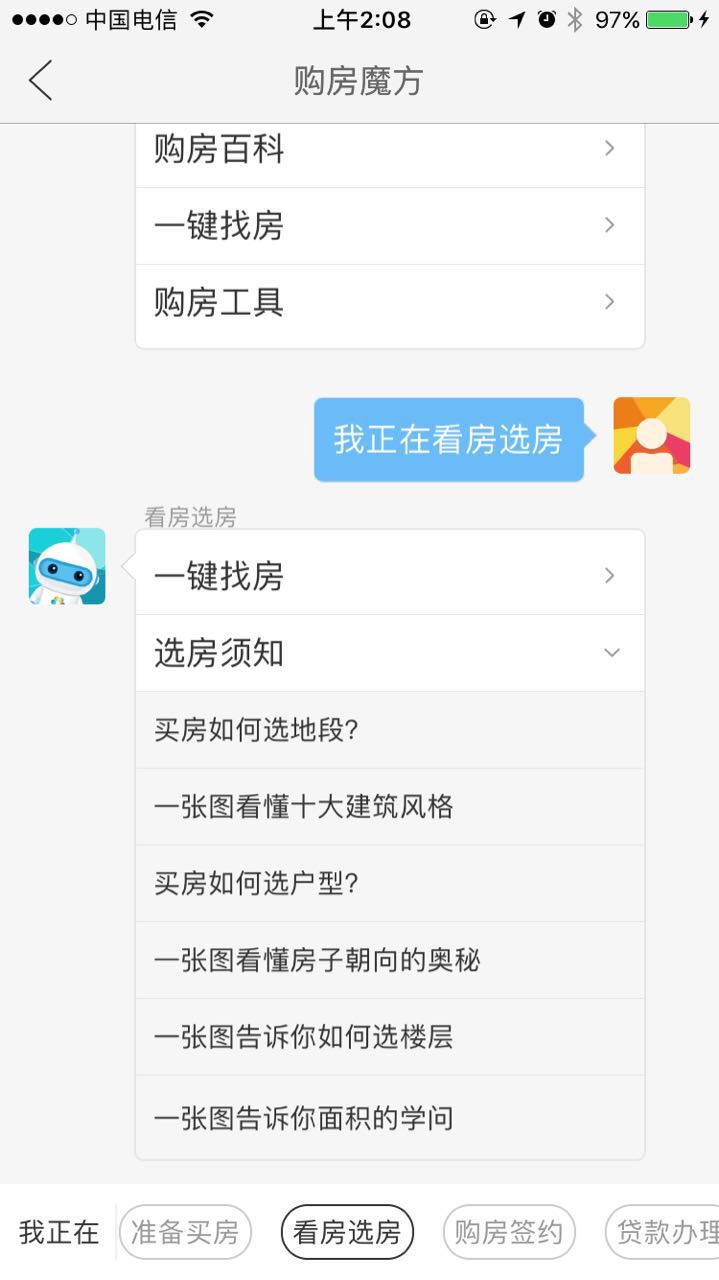 筹备买房,却对购房政策傻傻分不清楚;网上找房,满眼的房子不知道哪个适合自己;开始买房,繁杂的手续让人变身无头苍蝇……针对这些购房者在买房时经常遇到的问题,安居客推出的新版APP,智能功能和内容体系不断加码,直击用户痛点。 答疑:智能买房助手 用户在买房的不同阶段,所需要的信息和服务也是不同的。但市场上多数找房应用,并没有从购房周期上设计产品。 安居客APP智能升级后,首创房产领域智能人机交互形式,将买房过程中涉及到的资讯、知识、工具和一键找房功能聚合。为准备买房、看房选房、购房签约、贷款办理、交房过户等不同阶段的用户,提供相对应的信息和服务,解决各阶段用户的差异化需求。