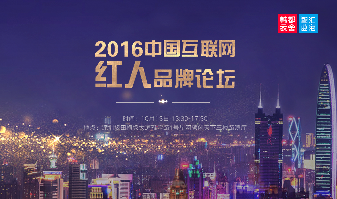 2016电商新风口,韩都衣舍为你解密如何打造红人品牌 摘要:韩都衣舍·智汇蓝海互联网品牌孵化基地,是由互联网品牌第一股-韩都衣舍电商集团打造的垂直赋能型互联网品牌孵化器,立足广州,面向整个华南区亟待转型升级的传统企业,轻熟电商品牌,原创设计师品牌,创业团队,开放韩都衣舍互联网品牌运营力及韩都衣舍九大系统。目前,韩都衣舍·智汇蓝海互联网品牌孵化基地已正式落户深圳星河·领创天下。 互联网品牌全盛时代,人人是网红!2016月10日13日《2016中国互联网红人品牌论坛》即将拉开帷幕!本次红人论坛由韩都衣舍·智汇蓝海深圳孵化基地联合星河WORLD、星河·领创天下主办,现场力邀互联网行业明星大咖,更有百位红人直播助阵,500+投资人、200+媒体,近30000+余人参观。