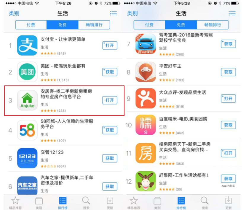借助全民挑房节的契机,安居客联手中华英才网、58同城二手车的定制化系列活动也分别于10月11日、12日启动。安居客将带领知名品牌开发商及明星楼盘项目走进各大企业,给企业员工提供市场少见的独家专属优惠房源,助力英才安居。并与58同城二手车的跨界联合,推出豪车接送看房等服务,发力“房+车”的全新服务场景。 强势增长,安居客稳居第一房产平台 在全民挑房节的热力下,安居客访问量继续保持高增长。截至10月10日,据统计,安居客今年10月的日均访问量同比去年上涨137%。其中,10月7日安居客全网访问量创下今年新高,同比去年上涨182%。APP端上升势头最为迅猛,日均访问量同比去年上涨216%,用户数上涨177%,移动占比已达到88%。 强势增长下的安居客继续稳固了第一房产平台的地位。据统计,安居客装机量已突破1.5亿,每月独立访问用户人数超过1亿。 截至10月10日,在AppStore上,安居客在生活大类中排名第3,在房产类排名第1,遥遥领先于同类应用。