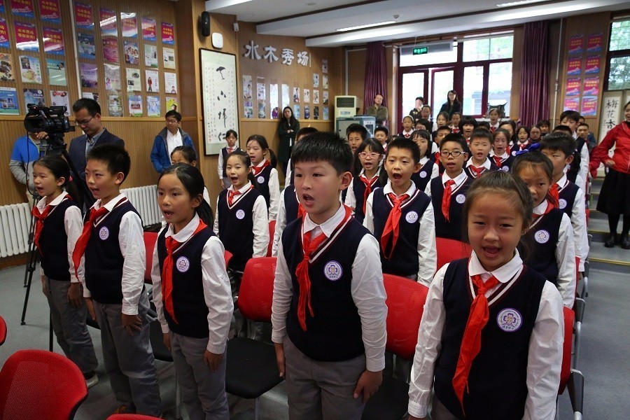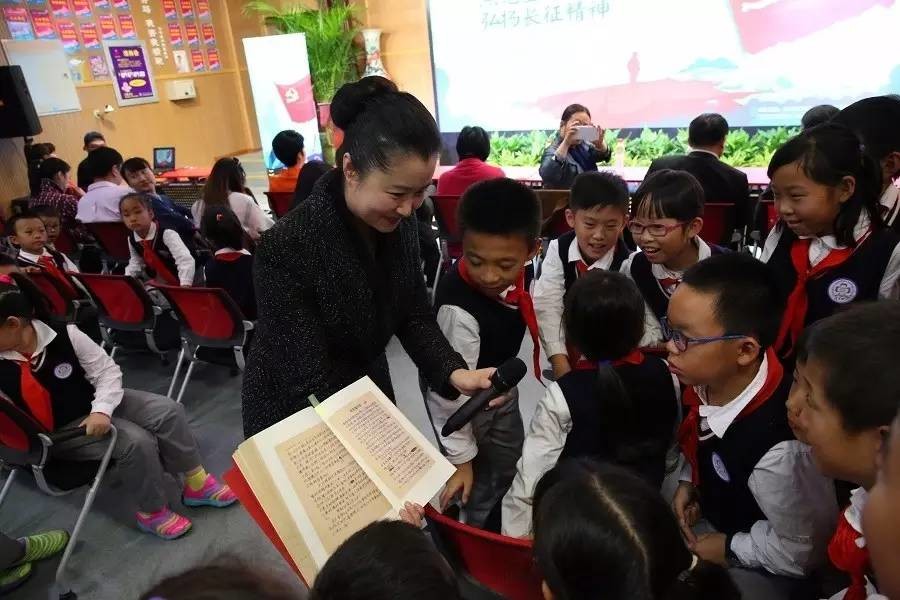 (中央电视台主持人、电视剧《长征》中邓颖超的扮演者黄薇) 活动中,清华附小的学生代表表演了诗朗诵《七律.长征》,在声情并茂的诵读中引领同学们一起缅怀红军创建的宏伟业绩。