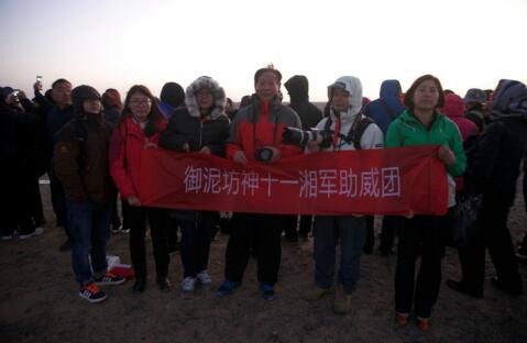 天宫刚起航,神舟又出征。10月17日,在长征二号F运载火箭托举下,航天员景海鹏、陈冬乘坐神舟十一号飞船从酒泉卫星发射中心飞入太空。7时30分,火箭起飞。约600秒后,飞船准确进入预定轨道,神舟十一号载人飞船发射取得圆满成功!“中国民族面膜第一品牌”御泥坊组织的“神十一湘军助威团”在现场见证了这一重要的历史时刻。