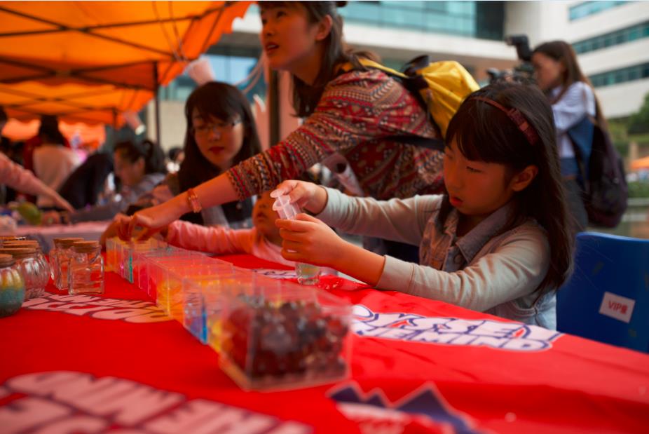 现场更是开设了多个亲子互动活动,孩子们和家长一起动手体验,感知亲自创作的快乐,像农夫市集里的种子认知、软竹手编、叶子标本和草帽绘本等摊位都满满的聚集了孩子和家长。从浦东过来的李先生说,不想孩子节假日沉迷在智能手机、平板电脑里,带上孩子过来参加创客嘉年华,这样的活动十分有意义。