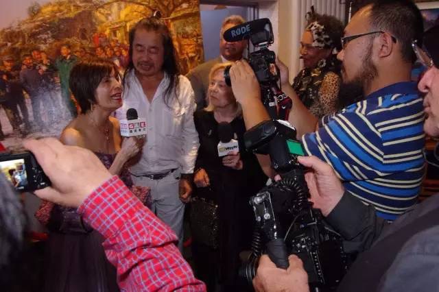 从下午开始,比华利山庄Saban 影院大堂布展的曹勇《自由》、《美丽的钓鱼岛》、《重返梁家河》作品前,就一直围满了观众。来自美国和世界各地的商界政要、比华利山庄及好莱坞的美国主流社会的各界精英,纷纷在曹勇的作品前欣赏拍照。艺术,无疑是这个世界上,最容易引起情感共振的语言,站在曹勇《重返梁家河》画作前,美国好莱坞电影顾问委员会董事长/首席执行官Janet激动地对曹勇说:看到你令人震撼的作品,我们仿佛看到一个伟大的灵魂。你这些伟大的作品,让我们感受到你对人类和平最真切的呼唤。你画作中透露出的美好与和平的光芒,让我们就像享受蓝天和阳光一样。”