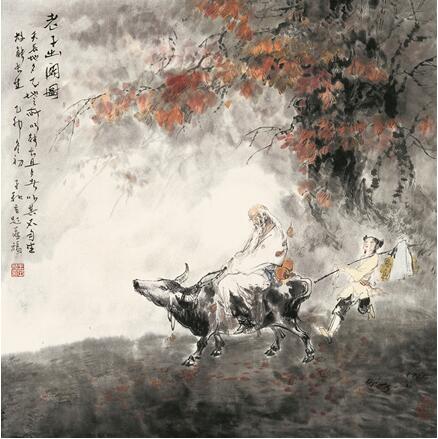 艺术家王子和作品 《老子出关》 二、主中学西进 创东方美术新境 随着时代的发展变化,社会公民和艺术家们的审美意识都在不断发展,人们的审美情趣也在不断变化中而有新的寄予。从传统中走过来的画家中,王子和的人物、山水、花鸟画之所以能够开拓出中国画的时代新面貌、新气象,一是因为他的艺术视野开阔,并兼有西方绘画的深厚功底,得益于年青时严谨而系统的素描写生训练;早在上个世纪六十年代初期,他在哈尔滨艺术学院美术系,专攻油画,并专心于对西方古典美术、各种哲学思想、文艺学理论的钻研和了解,通过学习、把握和借鉴西方绘画的结构、写实等再现式的造犁法则,以心察物、以心接物,以心绘物。二是七十年代末到八十年代中期,他曾多次被公派和应邀到加拿大、美国、日本、新加坡等国讲学、交流、展览,一方面致力于中国水墨画的海外传播,为展示中国优秀传统文化辛劳践行;另一方面积极以科学的态度进一步深入西方美术的腹地进行探究,从而,在后来的艺术创作中,也就理性地激活了他原先领会掌握的传统艺术思想和技法;他认为:造型并非是西方绘画艺术的专利,中国画强调的是既突出笔墨意韵,也重视结构造型;既要有写实能力,也要有写意特征,力主中学要“深”,西进要’实‘,这样才能够得心应手地描绘现实生活,反映时代风物。先生以至精至细的思想感受自觉引领着个人的艺术行为,在更广泛的主张中学西进的意义上真正实践了“师外造化,中得心源”的主张,看他的作品《归巢》、《山鬼》等绝不是某家某派的笔墨程式,一石一水、一花一木,一人一物、一姿一态,每个局部和细节皆由心得,点活意境、充满诗性、耐人寻味,真实而生动。既注重心理的情感和想象,也有对客观的忠诚和担当,是浪漫与现实的交互,足见他对艺术的一丝不苟、勤奋不怠。更为可贵的是,王子和先生的画作,表达的是他在尊重维系大众审美的共性接受中,能充分展现个人的美感体会,主要表现在善于抓住特定自然和社会的某个时空瞬间的奇姿和风韵,以揭示并传递深刻的思想内涵和精神品质。他的山水画时而耸拔剑穿、突然而起、戛然而止,时而山峦叠翠、细雨朦胧、神韵纯净,不仅雄伟而且秀美,再如《山野人家》、《黄河之水天上来》等作品,既有惟妙惟肖地描绘,又有意高境远的传神,老百姓觉得美,人民喜欢,如此,他的画注定是有生命力的。作为一名卓有成就的老艺术家,如今仍然始终坚持“面向现实生活,面向大千世界、面向时代未来” 勤奋耕耘,没有因为眷恋东方传统而怠于艺术创新,也不因重视西方文明而远离东方神韵,他在走自己的路,在为促成中国和东方绘画艺术的时代创新和巨大发展不断探索着。
