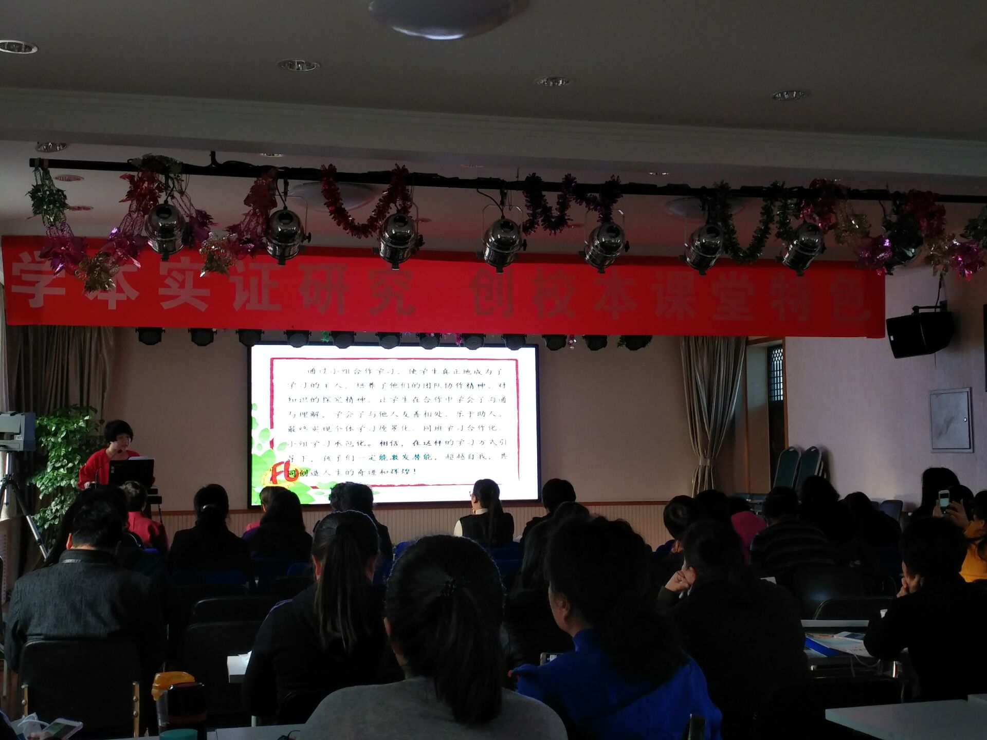 学校校长孙少红做《科研引领,学本之路,得服务之本》汇报说,学校在课堂改革时,坚持一个思想,一切对孩子的终身发展有用的就要坚持。