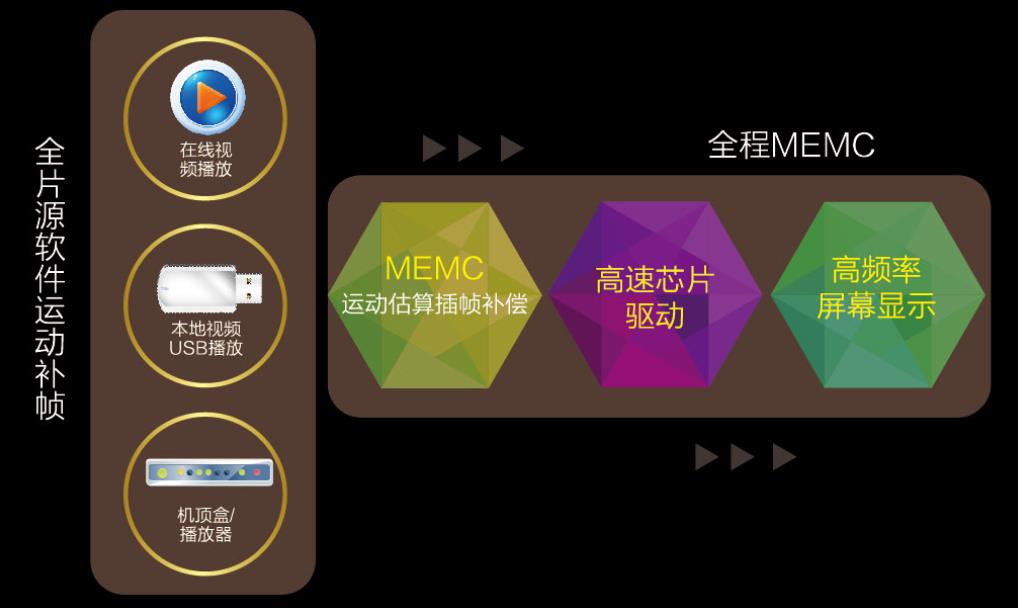 看电视不伤眼?解决画面拖尾的MEMC帮得上忙! HDR能够回归清晰细节,MEMC则可以带来流畅无阻的画面,令画质再上一层楼。而市面上不具备该功能的电视在显示高速运动画面时,会出现拖尾、抖动、虚影等问题,须知道这不仅对用户观感带来不良影响,长时间观看这类型“问题”画面,还会对用户造成视觉疲劳、影响视力、晕眩甚至更严重的情况。 因此,康佳劲速电视利用MEMC全程运动增强技术完美解决画面拖尾等缺陷,同时最大程度实现帮助保护用户的眼部健康,独家支持全片源软件运动补帧,通过硬件高速处理,凭借对角线补偿技术,消除阶梯状轮廓,恢复原汁原味的边际轮廓定义,高速屏幕精彩呈现,真正实现全程运动增强,名副其实“运动瞬息,清晰呈现”。