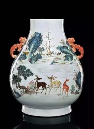 铜鎏金哲布尊丹巴像扎那巴扎尔,蒙古十七世纪,高52厘米,直径37厘米。图片:致谢中国嘉德拍卖行 另一件作品是清乾隆时期的一座粉彩百鹿图螭耳尊,这件作品不同于寻常所见的小画片百鹿尊,它采用了要求更高级的大画片,绘工和上色都是浑然一体,堪称乾隆时期官窑粉彩标准器,绝对是藏家必争之作。