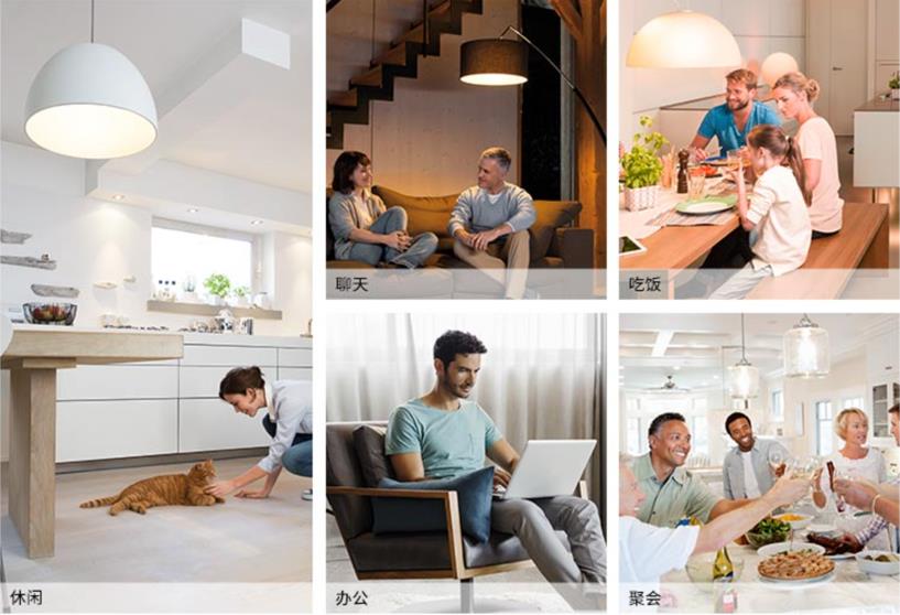 通过WIFI网络,欧司朗“彩虹系列WIFI吸顶灯”可以实现灯光颜色的调节,当然用户也可以自行调节灯光的颜色,在不同家庭生活场景中营造最合适的照明,如在客厅,家人晚饭后的轻松聊天、周末晚上朋友的聚会、下班后在客厅和孩子们的游戏、以及卧室里温情舒适等等,通过手机掌控灯管,营造不一样的房间氛围。
