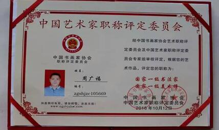 2014年周广福老师的书画作品在国际华人书画界获(最具收藏书画家称号) 2015中国百强书画家