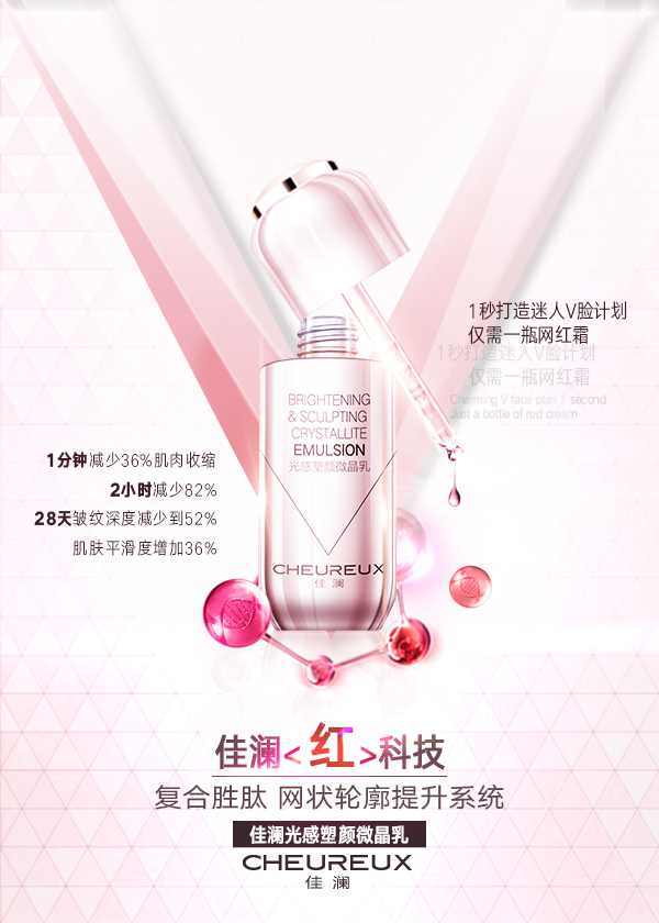 神奇V脸成分 佳澜网红霜的这个复合胜肽隐形网状轮廓提升系统之所以这般神奇,全都归功于它的两大核心成分。其中的胶原小短肽被称作是目前人类所发现的勿须通过任何介质,唯一可以被肌肤直接吸收的营养物质。其不仅具备蛋白质的全部营养特性,还能快速修补皮肤中断裂的肽链结构,自内快速提拉紧致肌肤轮廓。既可以维持人体间充质干细胞、皮肤干细胞的生长,还可以有效的促进细胞增殖,促使皮肤再生。 三胜肽被视为是生长因子,有着恢复肌肤年轻、减少粗细皱纹、抚平疤痕、改善肌肤弹性、增加角质细胞和纤维姆细胞增生的能力。还能够有效抑制命令肌肉动作的乙酰胆碱的传导,使肌肉瞬间放松,从而达到抚平动态纹的效果。
