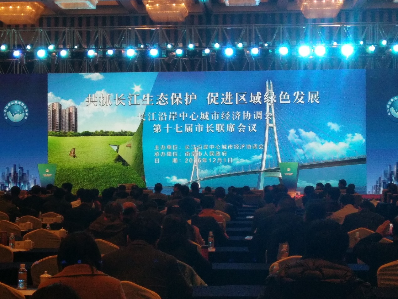 2016年12月1日,长江沿岸中心城市经济协调会第十七届市长联席会议在南京紫金山庄会议中心成功召开。本次会议以“共抓长江生态保护 促进区域绿色发展”为主题,来自上海、重庆、南京、武汉、合肥、九江、荆州、宜昌、宁波等27个成员城市的市政府领导、发改委负责人及相关合作交流部门在会上就绿色长江沿岸生态保护、促进区域绿色发展等议题展开热烈讨论,钩画出长江流域共同发展的理想蓝图。