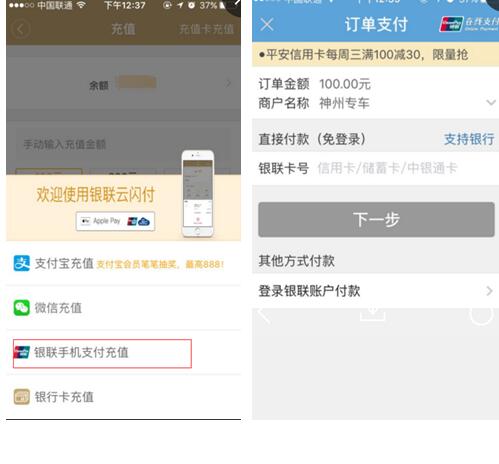 近日,神州专车APP版本全新升级新增银联手机支付功能。至此,用户可以通过支付宝、Apple Pay、微信、银行卡和银联手机5种方式对神州专车账户进行充值。