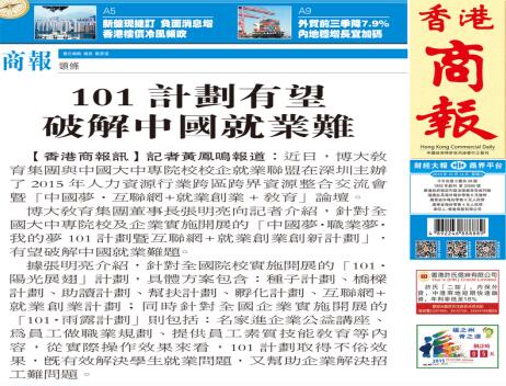 《香港商报》报道 根据学生情况个性化定制职业再教育,全力打造并促进学生从“蓝领”、“白 领”到“灰领”的完美蜕变。全力践行“精准就业”解决“精准扶贫”,做好“扶上马、送一程、管一生”工程,努力真正实现,“扶持一个人就业,改变一个家庭;扶持一个人创业,改变一个地区。” 正如博大教育集团的名字一样,“海纳百川,有容乃大“,博大教育集团以大海般的胸襟迎接着每一位学员,见证他们的蜕变与飞翔。谦谦君子的态度,孜孜不倦的教诲,这便是张校长最虔诚的信仰。 |