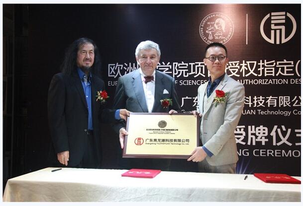 12月20日 中国•广州隆重举行了欧洲科学、艺术和人文学院科技成果推广应用(中国)授权指定运营商授牌仪式。 欧洲科学、艺术和人文学院院士•副院长安特-格利博达、毕征庆院士、蒋玉林院士以及陈云院士代表欧洲科学院对广东易龍源科技有限公司授予“欧洲科学院科技成果推广应用(中国)授权指定运营商牌匾,科技界、企业界、投资界代表见证了授牌盛典。