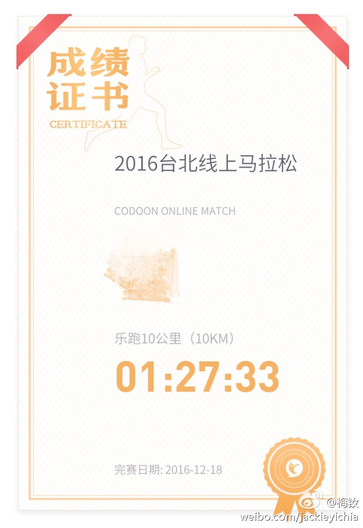 过去20多年里,台湾地区的路跑比赛有了长足的发展,从1993年的10场路跑、2场马拉松,激增到2015年740场路跑,2014年半程/全程马拉松总数达到346场,但没有一项赛事的娱乐特性,能和台北国际马拉松相提并论。在这一天,每个跑者看重的不是成绩,而是一起参赛、一起娱乐的氛围。咕咚之所以将台北线上马拉松塑造成一场追求血脉情结的精神娱乐赛事,也是为了和线下赛的特质相契合。 不管10公里、半马还是全马,参与台北线上赛的咚粉们都带着特殊的情怀,对这场赛事的奖牌,也带着不同的眼光。以日月潭的外形作为创意基础,打造了半圆形的牌体,加上雕梁斗拱的台北故宫博物院造型,“两岸同根”的蕴意也显得格外亲切。 在咕咚举办线上马拉松赛事的三年中,注重精神诉求、强调陶冶情操的线上赛事并不少见,今年更是数量多多,国内赛事如腾冲线上马拉松、义乌线上马拉松、海陆空主题线上跑、鲁迅文化线上跑、月跑一善活动的“重回长征路”等,得到了咚粉们近乎狂热的追捧。除了坚持线上参赛的成就感,还能在奔跑过程中,获得更多的精神享受。另外,全新的完赛虚拟证书也已经在咕咚APP上线,对实物模拟度很高的外观,也让咚粉们完赛之后的心情变得更加靓丽。
