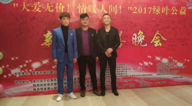 图左到右:谢承佑、肖华、诗昕南 慈善协会董事肖华先生低调现身2017“大爱无价,情暖人间”绿叶公益慈善晚会现场,跟随行同事一起坐在大厅最后一排,全身心的看完整场慈善演出,中途没有离开半步,可见肖华先生对慈善事业的热爱,和对本次晚会导演组的高度认可。晚会结束后,肖华先生与本次晚会主题曲《星光点亮梦想》演唱者:诗昕南、谢承佑合影留念。并呼吁更多年轻人像他们学习,将慈善事业发扬光大,感染更多的爱心人士来做慈善,献爱心。