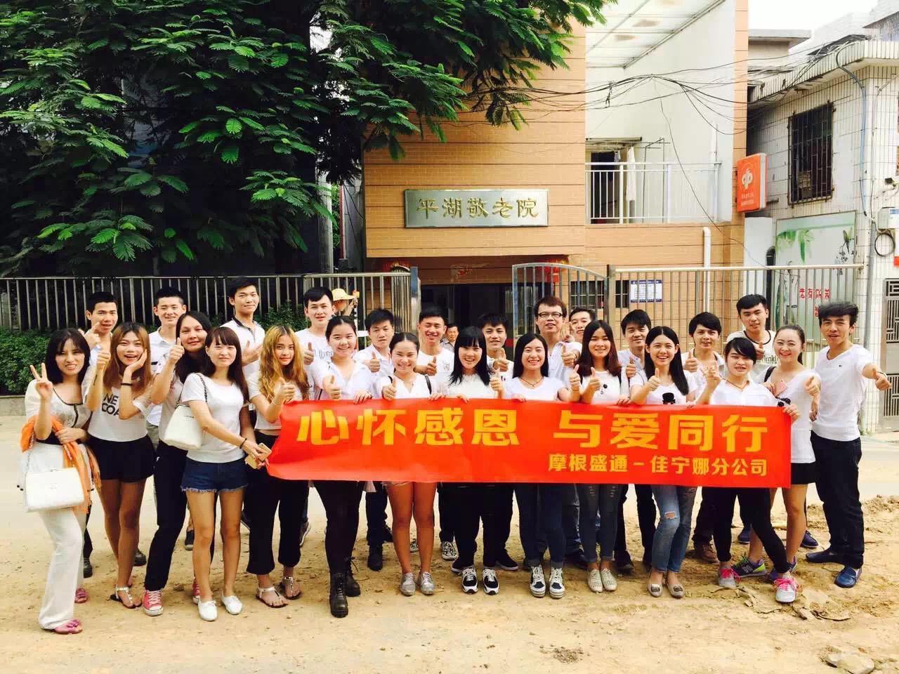 近日,由深圳市摩根盛通主办的“心怀感恩,与爱同行”活动顺利开展,摩根盛通全体员工聚集到深圳市龙岗区平湖敬老院开展爱心活动。志愿者们用自己的爱心和真诚的微笑温暖老人的心灵,给老人按摩,陪老人散步,晒太阳,聊聊天,倾听老人讲述精彩的人生故事,给老人表演节目-唱歌,一首首歌曲唤醒了老人们金色的记忆,在欢声笑语中度过一个非常美妙的上午。志愿者们用自己的爱心传递着生命的正能量。 (志愿者们平湖敬老院门前合影)