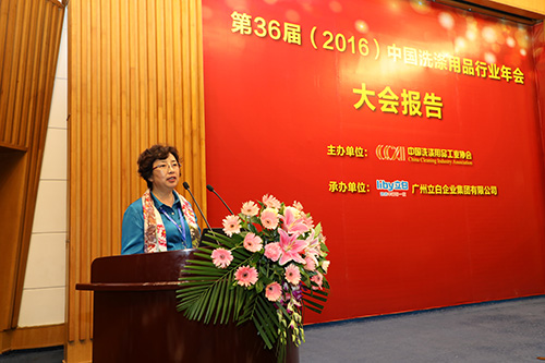 2016年11月24日,第36届(2016)中国洗涤用品行业年会于厦门成功举办。由中国洗涤用品工业协会主办的本次年会,以“需求导向下的供给创新”为主题,得到了全体与会者的共鸣。大会由立白集团公司总裁陈凯旋主持,工业和信息化部消费品工业司副巡视员汪敏燕、中国轻工业联合会秘书长杜同和分别为大会致辞。汪敏燕副巡视员还从宏观经济角度,为大家分析了当前的经济形势和对策研究。她着重讲解了国家推进“增品种、提品质、创品牌”三品战略部署,希望大家着力开展技术创新,调整结构,转型升级,弘扬工匠精神,提高管理水平,凭借高品质打造响亮品牌!
