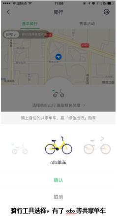 推测:共享单车是运动新方向 从7.7版咕咚APP的骑行选项当中,我们发现,除了之前的私人自有自行车选项,已经加入了ofo、摩拜、易代步三家共享单车,据咕咚市场相关负责人表示,后续还将加入优拜、小鸣、小蓝等共享单车品类。