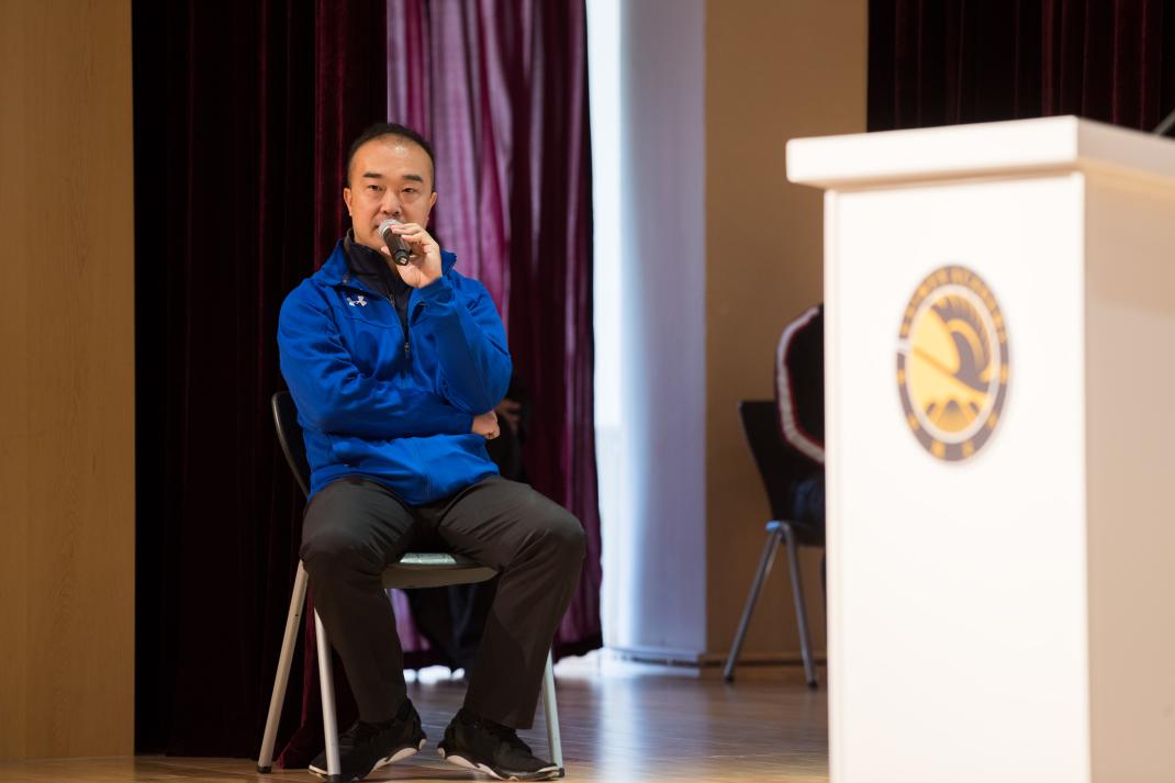 本报凯文学校讯 10月8日,IMG学院中国区负责人马晓斌先生、IMG学院高尔夫学院总教练迈特.施耐德先生、总教练派特.达赫迪先生来到北京凯文学校(海淀校区),双方开展了“IMG学院凯文行”主题活动,三百余名学生和家长参加了本次活动。 嘉宾们分享了国际领先的体育教学模式,讲述了关于申请常青藤名校必要条件、名校体育奖学金申请等相关问题。在凯文学校高尔夫、网球体验课上,两位国际教练向凯文的学生们展示了专业的训练方法。