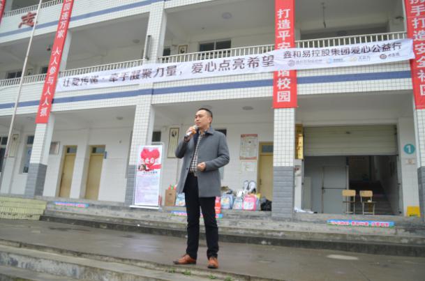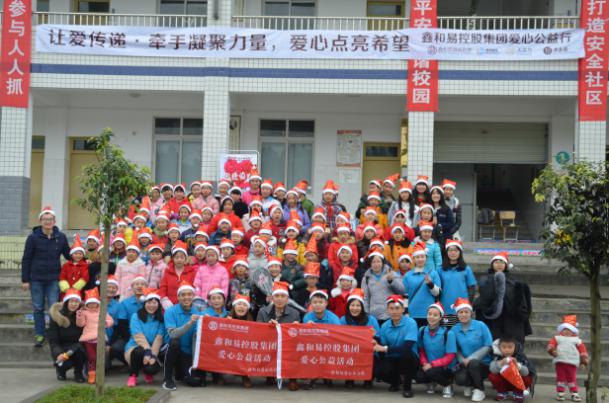2016年12月25日,2016年“让爱传递•牵手凝聚力量,爱心点亮希望”公益活动在金堂县大桥小学举办。鑫和易控股集团董事长杨永华、人资行政总监黄红、西风汽车租赁总经理李杰等出席了活动仪式。该学校的120名学生参加了活动捐赠仪式,并在仪式后收到了文具用品、课外书籍和圣诞礼物。来自鑫和易控股集团爱心小分队的志愿者们和孩子们一起互动游戏,陪他们度过快乐的圣诞节。除了陪伴和玩耍,爱心小分队的志愿者们还给他们带去了一堂实用销售技巧课程,教会小朋友们一些实用的销售技巧。