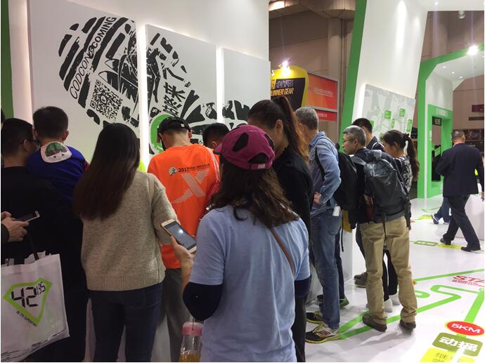 刚刚过去的2016年,中国马拉松参赛人次超过280万人次,常年跑步人口数以千万计。首届马博会的过百家顶级参展商涵盖整条中国马拉松产业链,咕咚展台则吸引了大批国内国外跑步爱好者,琳琅满目的线上马拉松奖牌、扫码赢装备的抽奖、