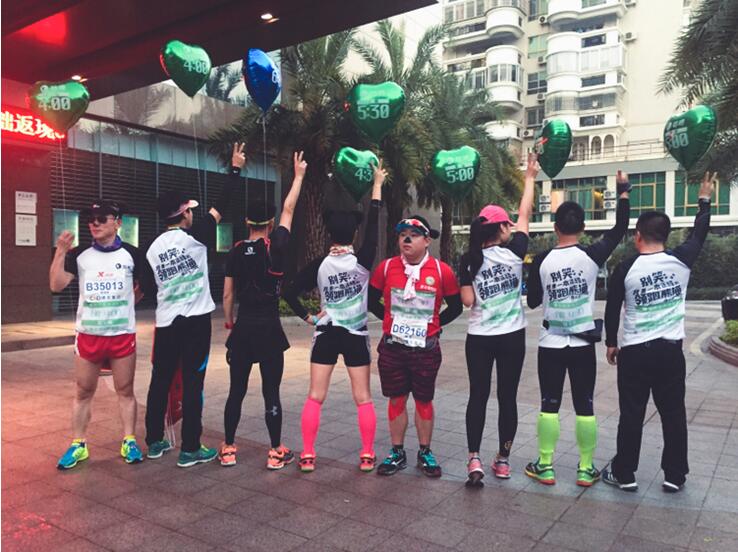 一年一次的厦马现场,来自各地的跑团精英大早就来到赛场,在咕咚活动区域留下了自己的名字。很多跑友志愿充当“领跑熊猫”,赛前这批可爱的“熊猫”合影留念,他们同时也是参赛者,身上最明显的识别物就是配速气球,能吸引一大波参赛成员紧紧跟随。