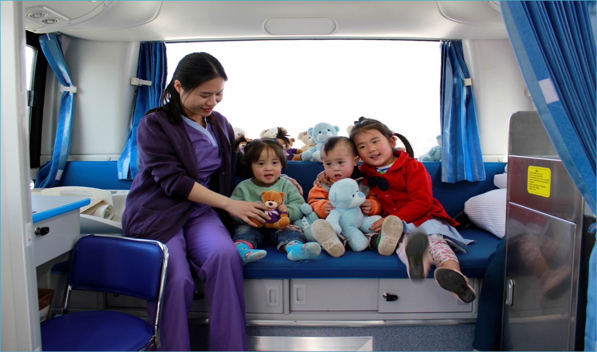 和睦家护士与救助对象在爱心医疗车 和睦家医疗践行公益,连续十二年为北京、上海地区血站提供无偿献血;连续五年与崔永元公益基金会携手,每年为基金会资助的乡村教师提供免费体检。连续四年牵手韩红爱心慈善基金会,走进贵州、甘肃等贫困地区,为边远地区群众提供免费医疗服务。定期组织社区健康讲座,普及医疗健康知识…… 此外和睦家还更向前一步,在国内率先发起成立和睦家中国医疗基金会。和睦家医疗每年捐赠相当于其年收入1%的医疗服务,作为“和睦家爱心基金”为需要救助的孤儿,贫困家庭儿童以及成人等弱势群体提供挽救其生命的医疗救助。
