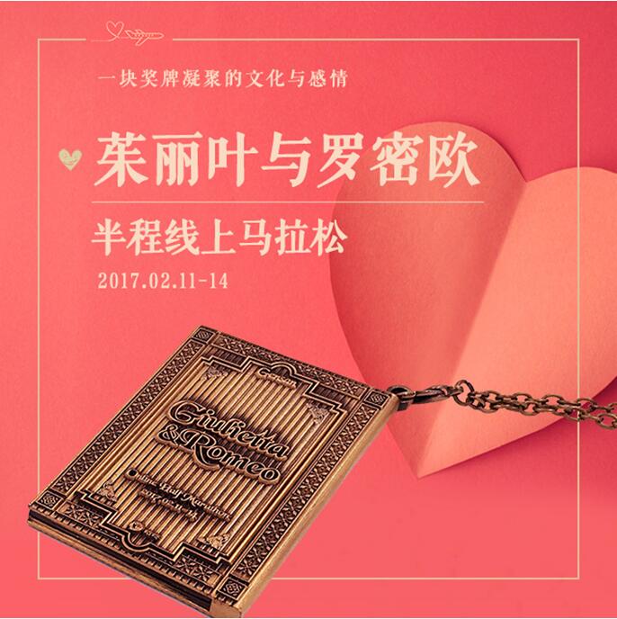 本次线上跑马的奖牌,以朱丽叶与罗密欧的旷世恋情为姻缘之引,神圣的古罗马契约外形设计,代表着誓言的忠贞不渝,周边的建筑装饰花纹,寓意婚姻的殿堂,诉说一段刻骨铭心的誓言:“在命运之书里,我们同在一行字之间。”而镌刻的文字,如同赋予神圣誓约的力量,记录下跑者最真挚的内心,最热情的一跑,最热烈的心跳。