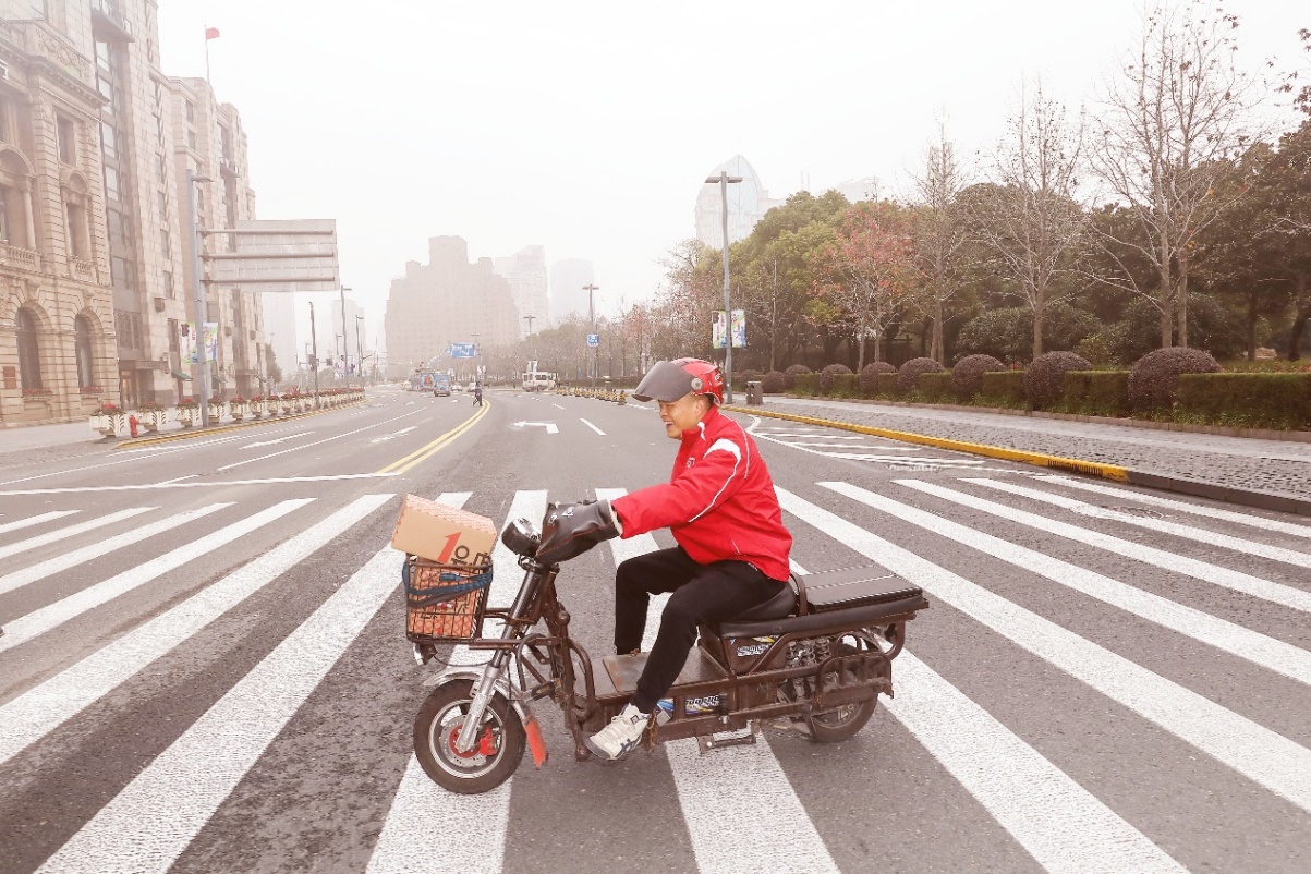(冯雷负责配送的区域是上海老街区,这里有很多小弄堂,他已经对这片居民密集、地形复杂的区域了如指掌) “本来春节打算回家相亲,但是工作需要,就和家里人说把过年不打烊的活动顶过去以后再回去,相亲的事也只能往后推一推了。” 冯师傅说,作为一名1号店的快递员,觉得很幸福,因为工作比较自由,而且多劳多得,只要肯干就有收获,觉得心里舒坦;又能见到很多人,接触很多新鲜事,他在1号店找到了前所未有的归属感。“既然要做,我就要把它做好。”冯雷说。 在沪上湿冷的冬天骑车,是渗进骨子里的冷。一路上,冯师傅按要送货的顺序整理单子,收好回执,一步步有条不紊。骑行在城市的缝隙间,穿过清晨和傍晚,越过摩天大厦的重重影子,冯师傅说,他的梦想是能扎根下来,将父母接来上海养老。 “有几个规定绝对不能丢” 已经是下午两点多,烟台小伙史云龙(化名)刚刚坐下吃他今天的第一顿饭。 “干这行确实对身体消耗比较大,一天打底得要跑50公里吧”,史师傅抱歉似的挠挠头,“但做哪行不辛苦呢,凭本事吃饭踏实。” 一天50公里,365天,18250公里。这是中国海岸线的总长度。