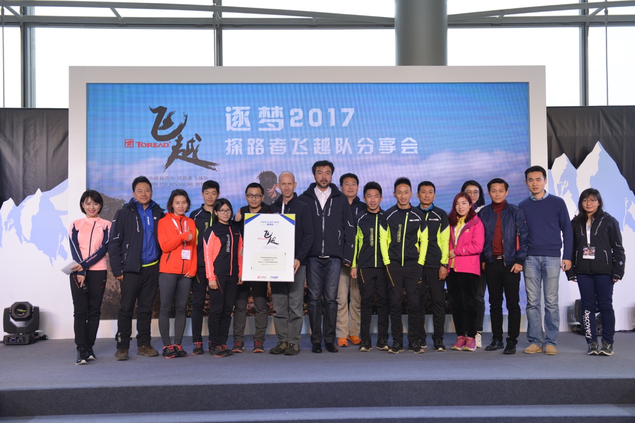 2017年2月16日,飞越队就2016年成果以及2017年期望,在ISPO召开“逐梦2017探路者飞越队越野跑分享会”,探路者品牌中心副总裁沈阳先生与探路者品牌徒步事业部丁娟女士莅临发表讲话,并展示了2017年新款产品。而在活动现场探路者飞越队还收到了世界探险越野系列赛赛事总监Craig发出的参赛邀请函,这无疑也标志着探路者飞越队在新的一年将继续迎接更具难度的挑战。与此同时,探路者飞越队部分队员向付召、贾俄仁加、“毛毛”周楚燕、张振龙等也纷纷亮相,并分享了自己跑步背后的心路历程。