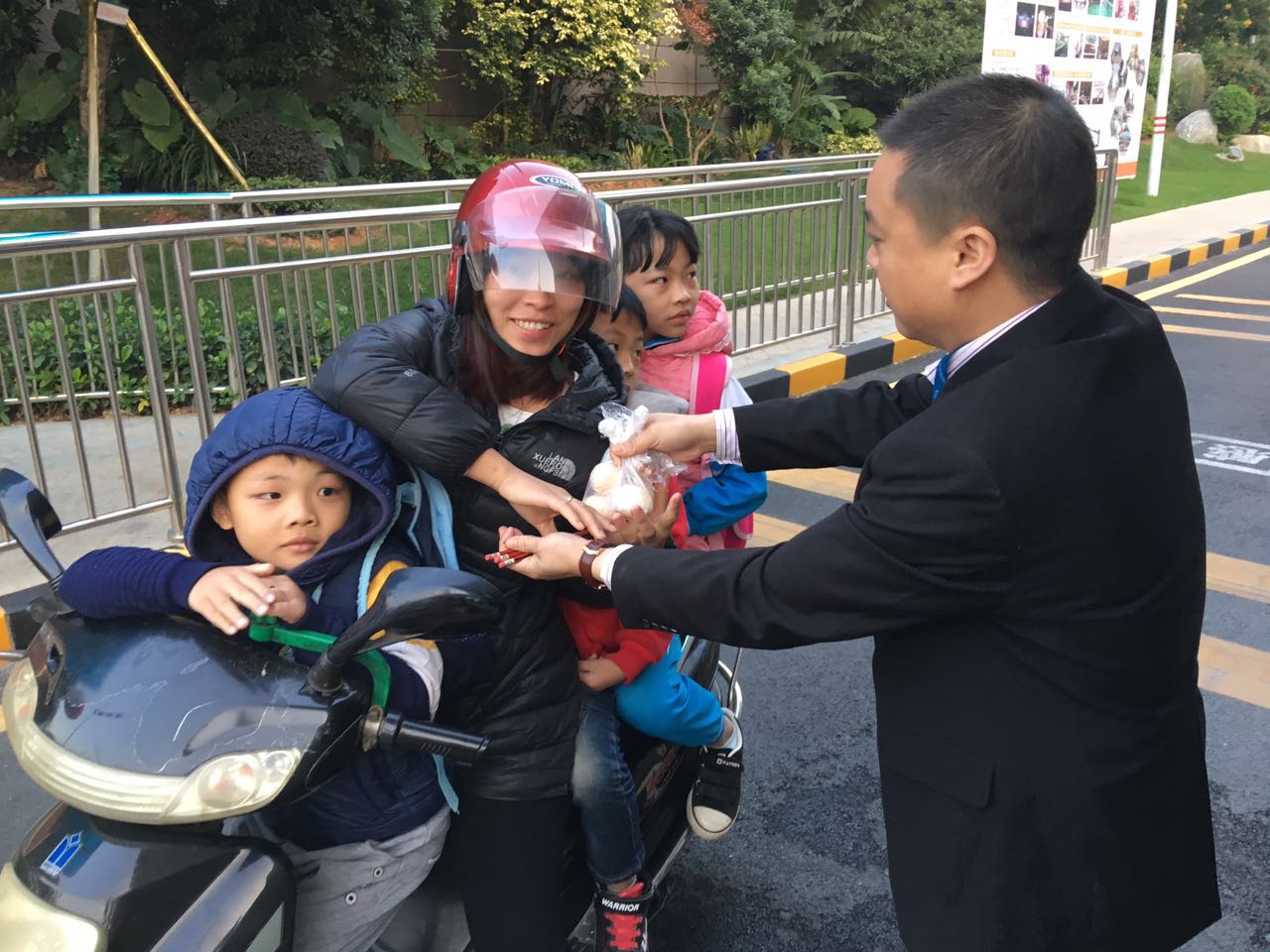 2017年2月14日早上7点-8点半东坑碧桂园物业开展“睦邻友好·开学季”活动,在门岗派发“1”支铅笔+两个“鸡蛋”,寓意着新的学期,学习成绩都是100分。