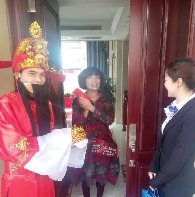 穿上财神服装带上碧桂园全体员工诚挚的祝福,进入苑区给各业户们拜年送祝福啦!