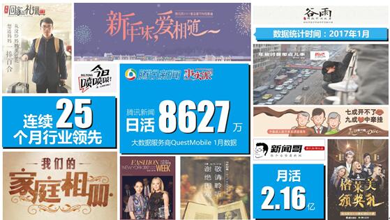 近日,大数据服务商QuestMobile更新了2017年1月综合资讯APP排名,受到春节假期影响,综合资讯类APP数据整体均有下降。日活数据方面,腾讯新闻仍以8627万日活位居第一,今日头条和网易新闻分列第二、三位,行业排名保持不变。
