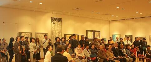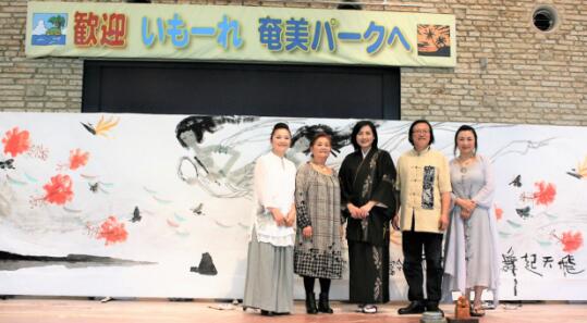 开幕式现场 田中一村是日本著名画家,誉称“日本的高更”,日本画坛巨匠东山魁夷的同学。田中一村纪念馆美术馆是日本著名美术馆之一。美术馆馆长(现千叶商科大学国际教养学部部长、前日本国立电视台NHK首席播音员)宫崎绿女士在百忙之中特地从东京赶来奄美主持开幕式。在热情洋溢的祝辞中说:“非常感谢和感动曾氏父女三人帯着了不起的艺术作品来到奄美举办画展……走进展厅,中国水墨画浓郁的异国情调扑面而来……中国悠久历史长河中,通过丝绸之路进行了悠远宏大的国际交流,这次展览会就是丝绸之路的现代版”。