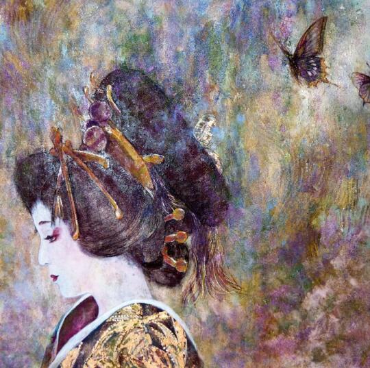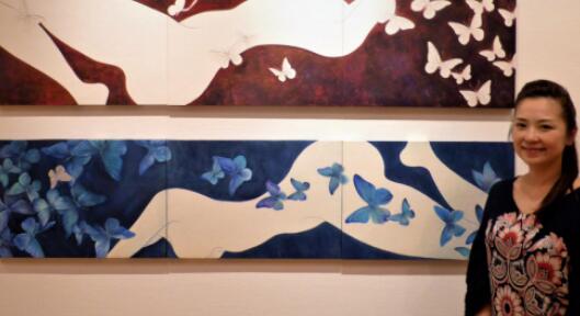 《曾勤作品集・一花一世界》由日本著名美术出版社求龙堂出版发行 曾黎在作品《青的梦-紫的梦》前 ■曾黎艺术简历 ・日中现代墨画会副会长 ・日本美术家联盟会员 ・日本华侨华人文艺界联合会理事 ・日中文化交流协会会员 1994年来日留学。现定居日本。从小受画家的父亲・曾令富(中国美术家协会会员)的影响学习水墨画、并研习「中国一绝」著名画家万钟先生的蝴蝶画,后师从日本画坛巨匠片冈球子的弟子新公子先生学习日本画。现以人物、花卉、蝴蝶为创作主题。构图新颖,笔法细腻,蝴蝶栩栩如生,人物现代唯美传神,画风独具。 多次举办曾令富・曾勤・曾黎父女三人展。毎年在东京都美术馆・国立新美术馆等全国公募展多次招待出品。 20多年来,一直致力于日中文化交流,和姐曾勤一起创办了日中现代墨画会,任副会长,并在小学、敬老院等进行义务教学水墨画。及在日中现代墨画会本部教室担任水墨画讲师,积极传授、推广、普及中国传统水墨画。