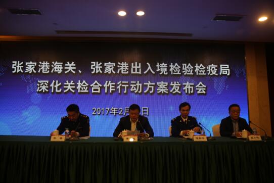 为进一步加强“关检合作示范区”建设,更大范围推进“三互”大通关,更高层次提升关检精准服务发展水平,2月22日上午,张家港海关、张家港出入境检验检疫局共同举办深化关检合作行动方案发布会。张家港市市委副书记、市长黄戟出席发布会并讲话,张家港海关关长陈解平和张家港出入境检验检疫局局长韦锋分别就“关检合作示范区”建设情况和取得的阶段性成效及深化关检合作行动方案进行了介绍。市政府相关部门、各区镇负责人及进出口前30强重点企业代表等参加了发布会。