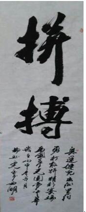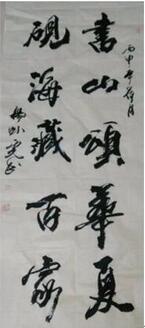 秦观词:鹊桥仙 创作年代:2014年 尺寸:140x70cm 书山颂华 夏砚海藏百家(竖幅、对联形式书写)创作年代:2016年 尺寸:140x70cm |