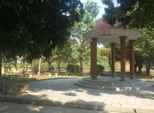 图为一脉相承亭 可以说,天马园是中华优秀传统文化传承的积极践行者。这里的每一处校园景观,都赋予了深刻的中华优秀传统文化内涵。“榕树林”赋予了“有容乃大必出英才”的含义,“芒果园”赋予了“忙于学习必结硕果”的含义,“玫瑰园”赋予了“花香书更香,花美人更美”的含义,“竹林”赋予了“高风亮节精神富足”的含义,“柠檬园”赋予了“宁静致远谋求发展”的含义……