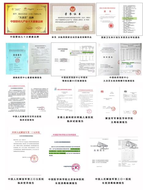 久洁灵长效消毒产品目前拥有儿童、运动、汽车、银行、医护和日用六大系列产品。产品经由中国疾病预防和控制中心、中国人民解放军军事医学科学院、中华预防医学会消毒分会等权威机构检测评价,在北京协和医院、中南大学湘雅医院、空军总院、301 医院、305 医院、309医院、202医院等医疗机构通过临床试验。目前已经广泛应用于医疗机构和民用市场。产品荣获中国婴幼儿产业十大健康品牌,并作为国家队运动员备战保障产品。