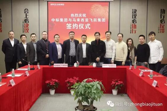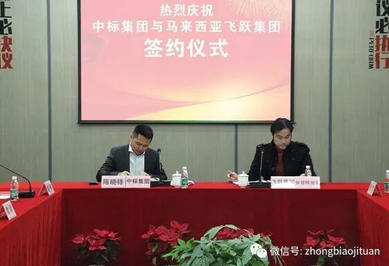 2月23日上午,中标集团总裁陈晓锋先生与来访的马来西亚飞跃集团常务董事拿督陈俊豪先生共同签署了战略合作协议。