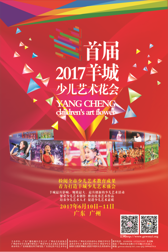 各有关单位: 为贯彻党的十八大精神和《中共中央国务院关于加强和改进未成年人思想道德建设的若干意见》的指示精神,深入贯彻落实市委、市政府打造文化名城的战略部署,提高我市少年儿童的艺术素质,培养少年儿童的高尚情操,引导少年儿童向真、向善、向美、向上的全面发展。同时,配合中小学校、幼儿园第二课堂活动的开展,丰富少年儿童文化生活,检阅我市少儿艺术教育和活动成果,繁荣我市少年儿童艺术创作,推出优秀少儿艺术作品,培养少儿艺术队伍和人才,营造关心少年儿童健康成长的良好社会环境,促进中小学生素质教育的发展。 现就举办“2017羊城少儿艺术花会”的具体事项通知如下: 一、活动宗旨 以展示全市少年儿童文化艺术素养的一个窗口,是一个具有导向性和示范性的全市少儿艺术盛会。该活动的举办为许多优秀的艺术作品及人才提供展示的舞台,极大地鼓舞了我市少年儿童奋发向上的热情,有力促进中小学艺术教育工作的普及和提高。 二、组织机构 主办单位:广东广播电视台音乐之声 广州市音乐家协会 广州市中小学音乐教学研究会 广州市少年儿童文化艺术促进会 协办单位:广州市儿童活动中心 广州市黄埔区青少年宫 广州市荔湾区青少年宫 广州市番禺区星海青少年宫 广州市萝岗区少年宫 广州市海珠区文化馆 广州市增城市文化馆 从化妇女儿童活动中心 承办单位:广东国族教育科学研究院 广东省孔雀声乐艺术中心 三、组织成员 主 任:郭伟生 广州市音乐家协会常务副主席、秘书长 马国华 广州市少年儿童文化艺术促进会会长 朱则平 广州市中小学音乐教学研究会会长 赵泽民 广东广播电视台音乐之声总监 副主任:严兰云 广州市儿童活动中心副主任 袁一正 广州市文化馆培训辅导部部长 黄会基 海珠区文化馆馆长 吴永辉 增城市文化馆副馆长 陈 敏 番禺区星海青少年宫主任 郭定昌 广州大学音乐舞蹈学院副教授 伍台倩 广东省孔雀声乐艺术中心主任 刘素毅 从化妇女儿童活动中心主任 郑小红 黄埔区少年宫主任 李兆军 萝岗区少年宫主任 刘鸿雁 荔湾区少年宫主任 廖若凡 红棉艺术培训学校校长 办公室主任:伍庆廷 广州少年儿童文化艺术促进会秘书长 成 员:黄楚欣、叶琳君、吴露露、陈景俊 四、活动安排 (一)活动内容 本活动组织声乐、器乐、舞蹈、戏剧曲艺类决赛若干场;美术作品类、书法篆刻作品、摄影作品评比若干场,2场少儿专家讲座及少儿艺术工作经验交流会、1场颁奖仪式暨优秀节目展演。 1、声乐类:合唱(合唱队人数不超过60人,节目时间不超过8分钟,钢琴伴奏1人,指挥1人,小合唱或表演唱(含伴奏人数不超过15人,演出时间不超过6分钟)、重唱(含伴奏人数不超过5人,演出时间不超过5分钟),独唱(演出时间不超过5分钟)。 2、器乐类:管弦乐合奏(乐队人数含指挥不超过65人,演出时间不超过7分钟)、管乐或弦乐合奏(乐队人数含指挥不超过40人,演出时间不超过6分钟)、小合奏或重奏(人数不超过10人,演出时间不超过6分钟)、独奏(伴奏形式不限,演出时间不超过5分钟)。 3、舞蹈类:群舞(人数不超过36人,演出时间不超过5分钟)、独舞、双人舞和三人舞节目演出时间不超过5分钟。 4、戏剧曲艺类:(含小品)剧种形式不限(人数不超过15人,演出时间不超过10分钟)。 5、美术作品类:国画、水彩/水粉画(丙烯画)、版画或其他画种(尺寸均不超过对开);卡通画(单幅尺寸为4开,或短篇4格,每格尺寸为16开)。 6、书法篆刻作品类:书法作品字体不限,尺寸不超过四尺宣纸;篆刻作品尺寸不小于16开、不大于8开,篆刻内容需另附释文。 7、摄影作品类:单张照、组照(每组不超过4幅,需标明顺序号,尺寸均为8×10英寸,不得进行电脑制作和暗房技术处理)。 8、少儿艺术讲座及培训:邀请国内著名少儿艺术教育家和少儿艺术编导进行授课,为全市少儿文艺工作者提供学习机会。参加听课和培训人员由各承办、协办单位组织,同时欢迎全市广大少年儿童文艺工作者报名参加。 9、少儿艺术工作经验交流会:各区、各单位推荐近年来少儿艺术工作成绩突出的单位和个人,并附上经验介绍材料和个人先进事迹材料一式2份及电子版,于5月31日前报送至组委会,各单位分别报送2-3个。组委会将从各单位推荐的名单中选出代表在会上发言,为全市从事少儿艺术工作的单位和个人提供学习和交流机会(具体事宜另行通知)。 10、颁奖仪式暨优秀节目展演:展演节目由部分获金奖节目和市级相关单位推荐优秀节目组成。组委会将邀请上级有关部门领导以及本届花会主办单位领导出席并为获奖单位、个人颁奖。 (二)组别设置 1、幼儿组(全市幼儿园的学生,3-6周岁以下); 2、小学组(全市小学的学生、青少年活动中心、文化馆、少年宫、儿童活动中心、少儿艺术社团和校外少儿艺术教育机构的少年儿童,6-12周岁以下); 3、中学组(全市中学、艺术学校的学生,12-16周岁以下) 五、比赛要求 (一)声乐类歌曲范围:本市作者创作的少儿歌曲,中外少儿优秀歌曲,文化部推广的“优秀少儿歌曲30首”(不宜选唱成人歌曲)。器乐类乐曲范围:中外优秀乐曲或本市作者创作的乐曲。 (二)音乐类比赛除可以借鉴、改编、演绎经典作品之外,提倡并鼓励演唱和演奏本市作者新创作的作品。凡在比赛中演唱和演奏本市作者新创作作品的节目均可获0. 3的加分。 (三)舞蹈类、语言类节目均要
