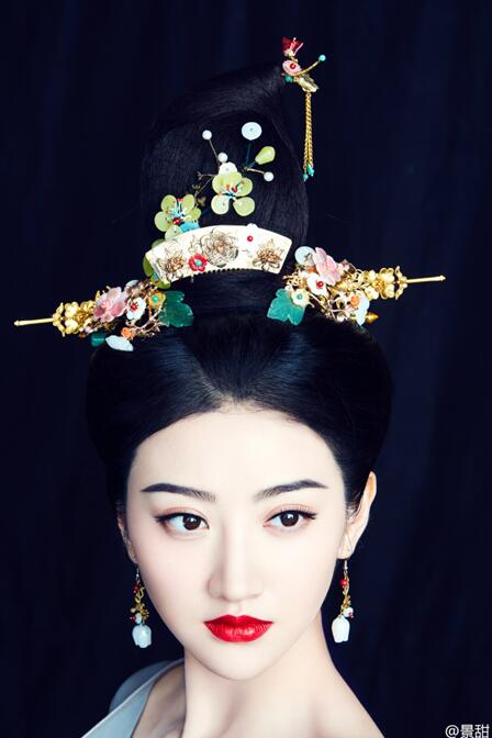 隆重的发饰和明亮的妆容只显得大甜甜更白,人家在微博PO出的照片也是很有自信的哦。为了这大唐美颜,都要和小编一起干了这碗“大唐农药”啊。