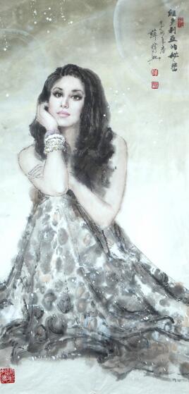 静心 艺术成就: 一.穿越中西 薛林兴勇于创新的画家,对传统绘画既敬畏又大胆突破,广泛吸纳西方绘画元素,把握时代审美意识,创造出完全超出于他人的女性人物画风格。薛林兴水墨人物画的造型借用了油画细腻入微的表现力,明暗过度,冷暖变幻 ,高光反光的运用使形象即惟妙惟肖,又生动感人。将色彩融进了他的人物画。红色的热情,绿色的生命,蓝色的冷静,黄色的明暗,紫色的神秘,白色的纯洁…每种颜色都以各自不同的性情 任何墨色都无法比拟的渲染情绪的诱惑力和美感。而色彩之中的色相、冷暖、纯度、明度、调和之美更是如魔幻的魔力,梦幻的境界。 他颠覆了齐白石‘太似为媚俗’,潘天寿的‘中西绘画要拉开距离’和传统的‘水墨为上’的绘画理论。采取写意与写实相结合,色彩与水墨相结合的手法,穿越中西,中西交融 。将东方的神韵美,古希腊的人体美,古印度的性感美,三大艺术体系合为一体,在中国人物画坛独树一帜,成为新仕女画派的创始人。