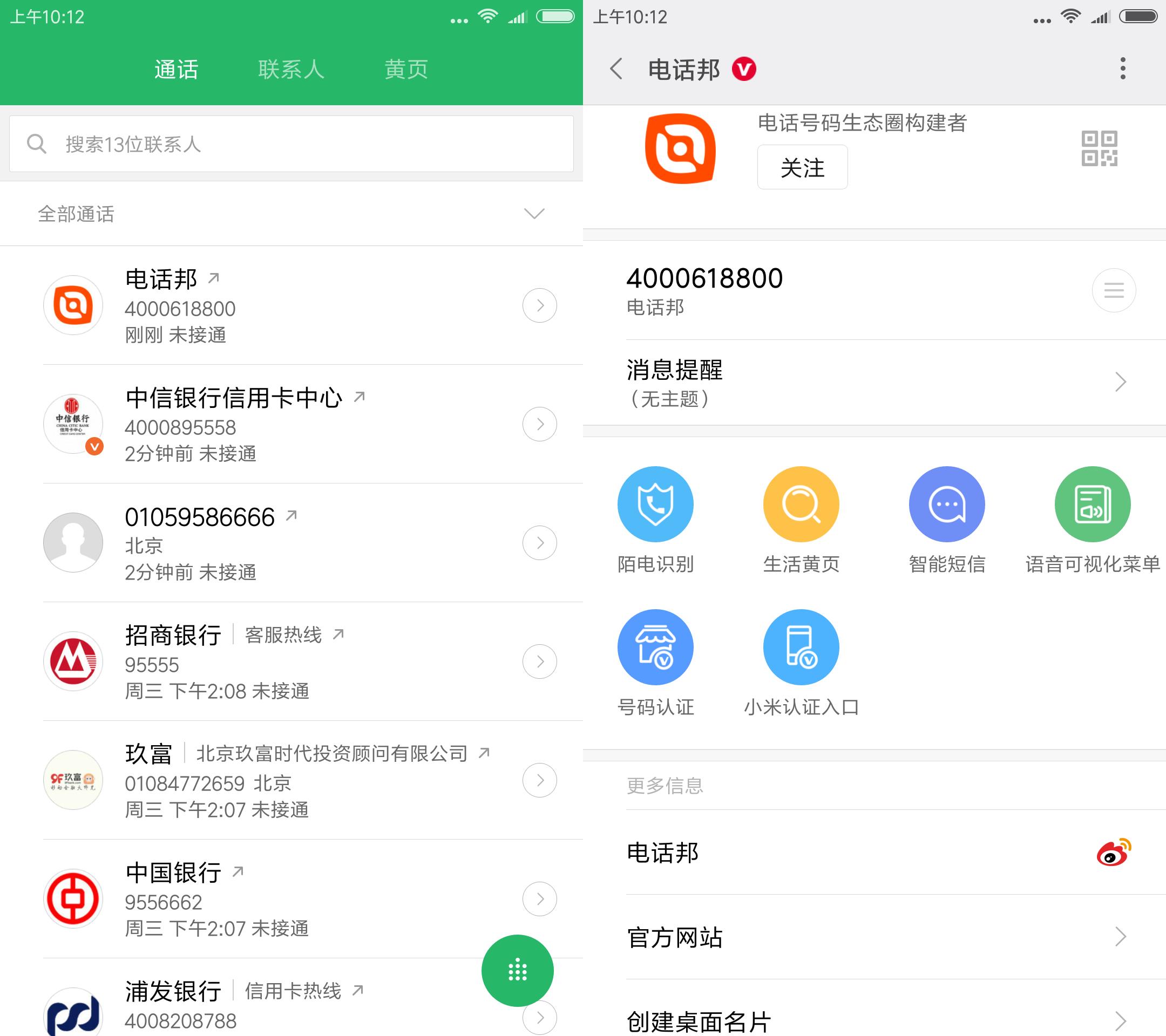 (品牌号——来去电页面展示效果) 电话邦的品牌号服务将企业品牌和企业号码紧密联系在一起,并收录到工信部指导的可信号码数据中心,由中心对企业信用信息、工商信息进行权威认证并颁发实名备案证书,提供企业号码查询及信用评价等级,有效提升企业可信度和影响力,保护企业品牌。 除了可信号码数据中心的权威收录,品牌号还为企业提供移动终端的品牌展示,在来去电时展示企业品牌、LOGO等信息,让企业号码不再是一串冰冷陌生的数字。电话邦已与华为、小米、OPPO、vivo、魅族、金立、中兴等手机厂商,腾讯手机管家、百度手机卫士、联通手机营业厅、有信、微会等安全软件达成深度合作,覆盖终端用户过10.2亿,日活用户达2.1亿。品牌号可帮助企业快速占领这些移动端广告位,并做到主动精准投放,把企业品牌精准的宣传到潜在客户的手机上,实现通话价值最大化,并留存企业品牌,实现多次曝光。