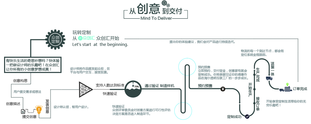 瞄准市场,布局精准社群 在互联网时代信息冗杂化碎片化的环境下,想要了解消费者的真正想法和对家电产品的真实需求,首先要还原真实的生活及消费场景,并探寻场景下的社群资源,深入社群去交互,不断发掘需求痛点。海尔定制平台遵循这一路径,将极具标签性的家居装修和母婴育儿作为两大场景进行深挖,家装和母婴社群也成为了海尔定制平台关注的重点。 通过一年的社群经营和探索,在这两大社群中,海尔定制平台众创出了孕婴专用空调、宝宝专用洗衣机,以及外置式洗碗机、根据空间大小定制家具家电套系等诸多产品案例。众多的交互案例让海尔定制平台越发感受到:真实的场景下蕴藏着极大的社群力量,会激发大量的定制需求,尤其母婴这一特殊身份的社会群体,以及处于买房装修这一特殊时间段的人群,会对家里日常使用的家电产生更加具体和苛刻的定制化需求。