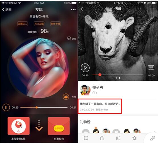 目前,用户通过友唱Mbar演唱之后,即可直接将歌曲上传至全民K歌与好友分享,分享红包、打赏功能还能赚取积分用于下次消费。背靠腾讯的大社交平台,全民K歌还将联动腾讯其他平台如QQ音乐、微信等兄弟产品,与友唱Mbar一起、逐步丰富用户对“轻娱乐”方式下的K歌体验。 在软硬件合作上,早在去年11月,全民K歌就联合麦克风缔造者途讯“跨界”推出了一款集潮流、时尚、简单、专业于一身的K068定制版麦克风,用户只需要通过手机与麦克风进行简单的蓝牙连接,就可以在无音响设备的环境下,通过“K歌-歌声优化-实时回放-上传-分享”的整合性K歌体验,满足更加专业化的音乐梦想。
